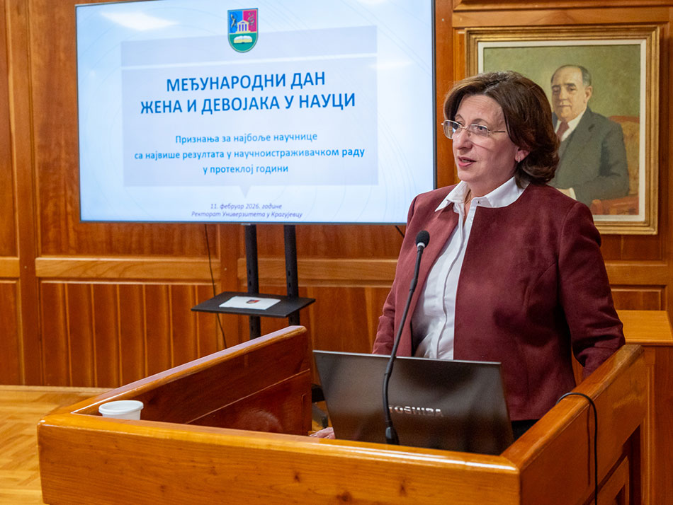 Поводом обележавања Међународног дана жена и девојака у науци, Универзитет у Крагујевцу је четврти пут доделио признања научницама које су оствариле највише резултата у научноистраживачком раду током 2025. године. Признања су додељена на 12 факултета у саставу Универзитета у Крагујевцу и у Институту за информационе технологије у Крагујевцу.