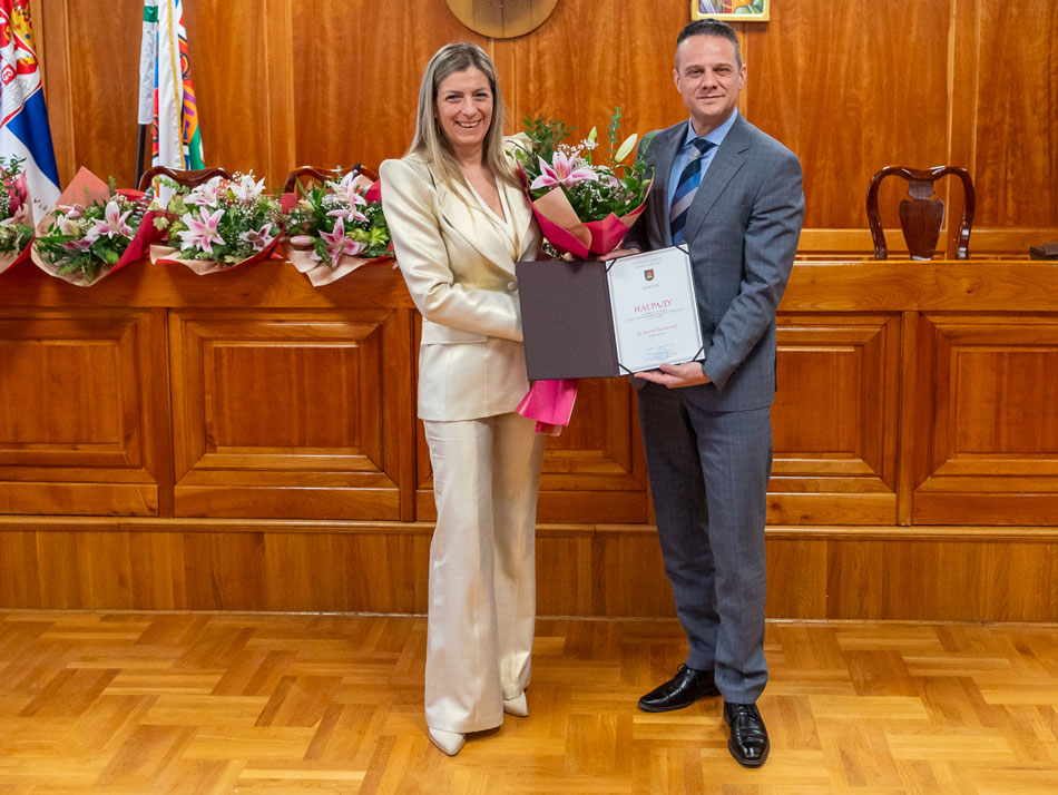 У име овогодишњих добитница признања обратила се доц. др Соња Вељовић са Факултета за хотелијерство и туризам у Врњачкој Бањи, охрабривши младе научнице да се активније укључе у научноистраживачки рад и истичући да труд и посвећеност воде ка успеху, упркос изазовима.